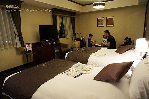 抵達大阪的第一晚開始,我們在Monterey Grasmere Osaka連續住了五天四夜,當我們辦理住房手續時,櫃檯人員告知有為我們升等到33平方米的大房間(超開心的啦~~)。