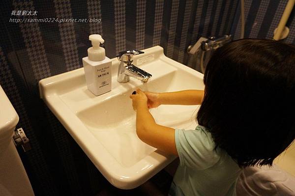 洗手檯還附上可以洗手和洗臉的泡泡,小孩使用起來超方便,而且我也發現,日本不管飯店還是公共廁所,普遍來說洗手檯高度都比較低,對孩子來說實在很輕鬆。