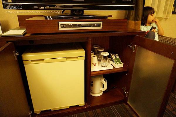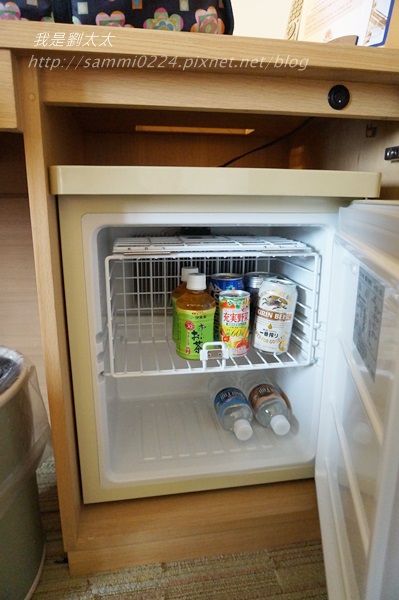 電視下面是冰箱,冰箱內有付費飲料,礦泉水也是要付費的喔。