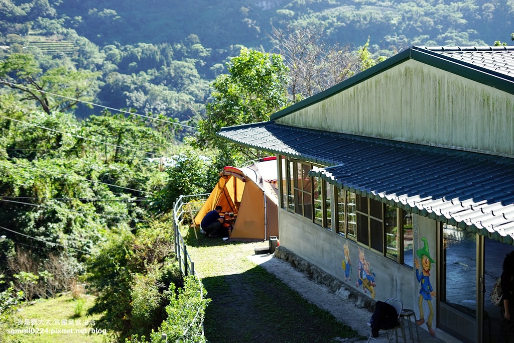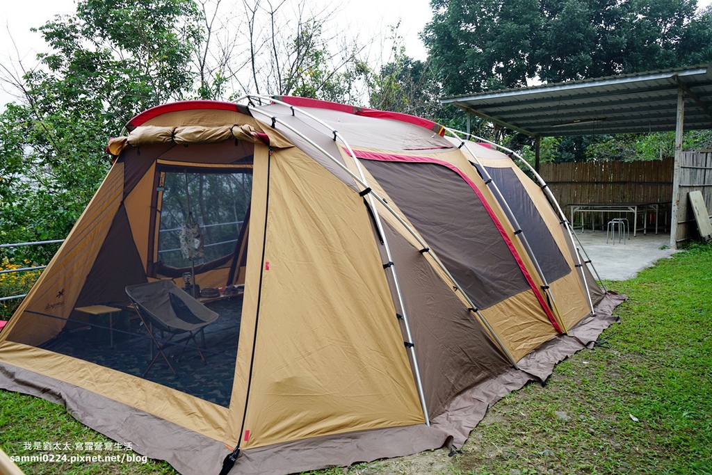 這一天臨時想到阿里山去露營,詢問了剛開始露營時也來拜訪過的頂笨仔露營區,老闆說,你們只有一帳,那就搭在室內區旁的位子吧。