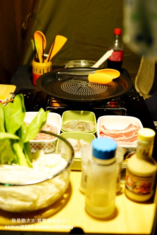 熱呼呼的鐵板烤肉料理,現煮現吃,最適合做為露營的晚餐,而且全家人圍著桌子吃飯的感覺,真的超棒的。