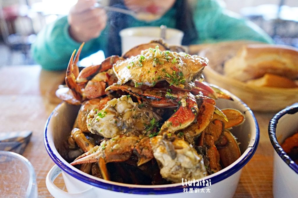 中午則是來到威靈頓王后碼頭的5號倉庫Crab Shack吃螃蟹,我們點了一公斤的牛油香蒜蟹(Paddle Crab)和海鮮巧達濃湯以及麵包和雞翅,每一道菜都好好吃,這應該算是紐西蘭此行最喜歡的一家餐廳了。