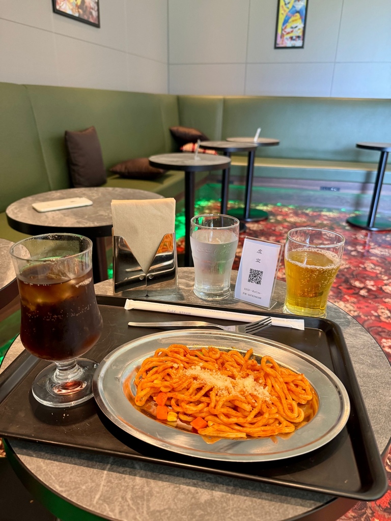 這是我點的拿坡里義大利麵還有虛空的自製可樂,可樂的味道很特別。