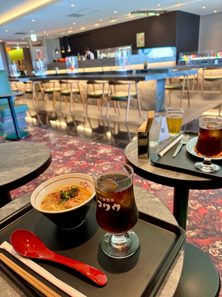 女兒點的是味增拉麵,整體來說餐點的口味普通,不過能在搭機前有一個舒適的場地休息一下也很不錯。