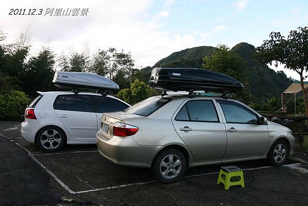 兩台車車頂的一銀一黑兩卡皮箱 一整個就是有型啊!! 不過即使多了幾百公升的容量 車子裡還是滿滿滿!