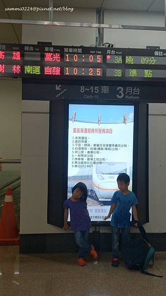 出發當日,正逢康芮颱風襲台,從前一晚就下著大雨,但我們還是如期出發,和老媽約在左營高鐵站準備搭10:25的火車,到新左營火車站才知道,上午八點過後從北部發車的都卡在彰化沒辦法下來,幸好我們這班車是由新左營發車。