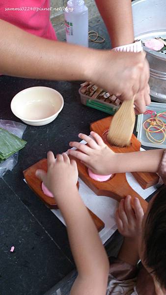 回房間時,正好遇上戶外的手作紅龜粿活動。