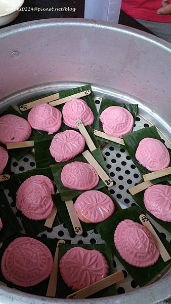 等炊煮好後,再憑著號碼牌領自己做的紅龜粿。
