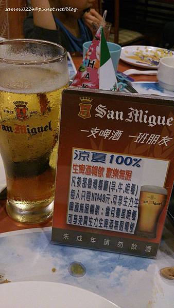 這次自助餐的菜色比起上回我們來的時候要豐富且精緻許多,而且還有當月壽星暢飲生啤的活動,老媽正好是八月壽星,就點一杯來喝,早餐時段也可以點不過一大早喝啤酒也太嗨了吧。