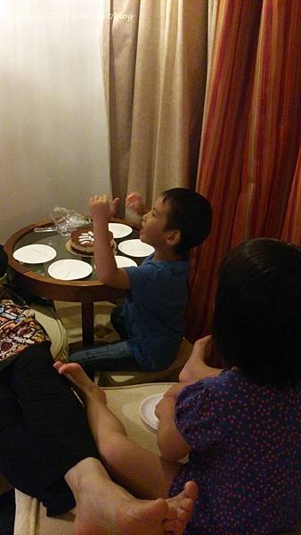 睡前的宵夜是飯店為老媽準備的生日蛋糕,這蛋糕四月份在知本老爺幫宥宥慶生時就有吃過,真的是相當好吃。