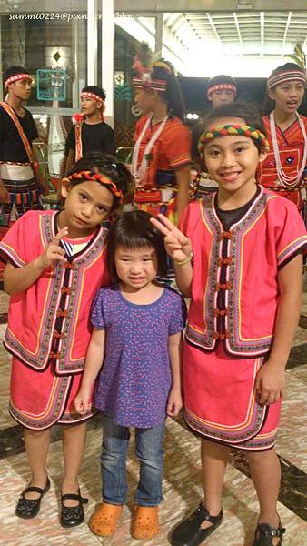 晚上的原住民跳舞表演,是菲菲最喜歡的活動,早早就去坐在小椅子上等待開場,上次也有和小姐姐們拍照喔!